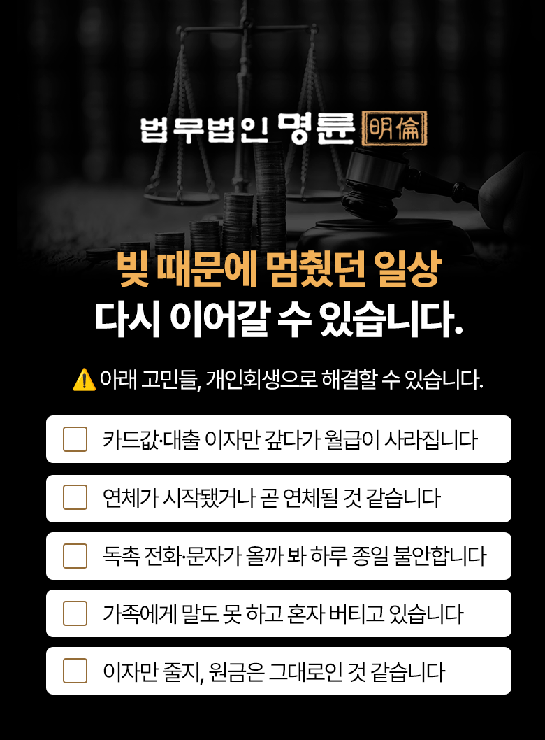 *본 상담은 개인회생 절차를 위한 안내이며, 대출 문의나 파산 상담은 해당되지 않습니다.